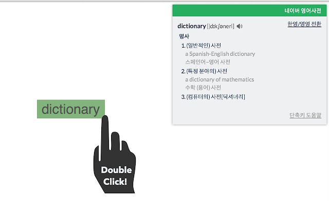 您可以使用快捷键在英文和韩文/字典之间快速轻松地切换,以了解字典的含义并聆听发音。