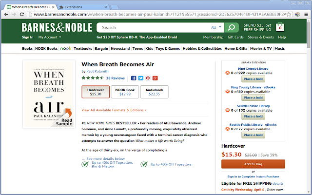 当您浏览各种网站时,可以从当地图书馆提供的目录中查看书籍、音乐和有声读物的即时可用性信息。