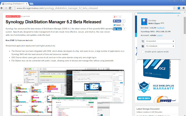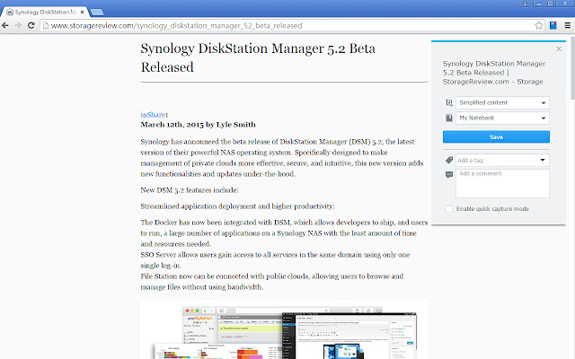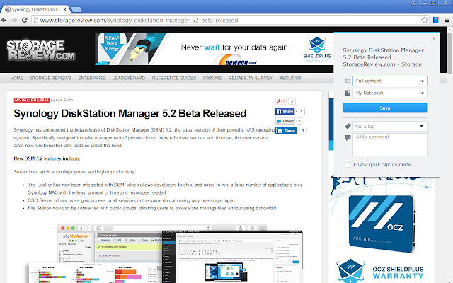 Synology Web Clipper 可剪取网页内容并将其保存到 Synology NAS。可保存包括文字、图片和链接在内的完整网页。将自己从管理数不清的浏览器选项卡和书签中解放出来。凭借 Synology Web Clipper,您可通过 Note Station 快速方便地访问剪取的内容。您还可添加标签和评论以管理剪取的内容。
