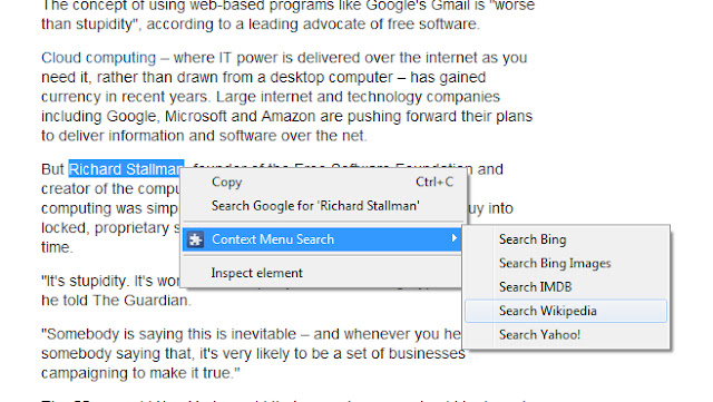 使用右键菜单在不同的搜索引擎中搜索选定的文本