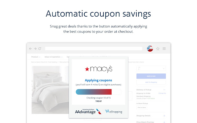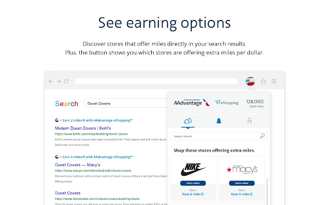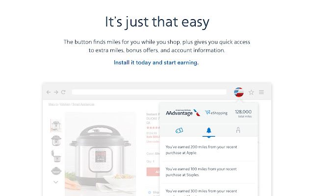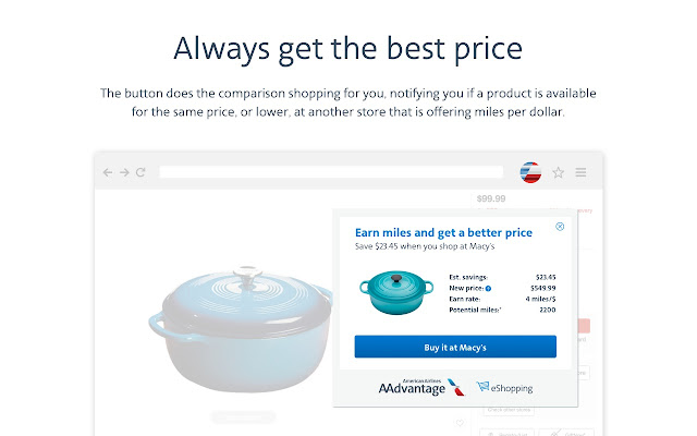 如果您喜欢赢取美国航空 AAdvantage® 里程,现在添加美国航空 AAdvantage eShopping℠ 按钮,每次您在您最喜欢的商店网站购物时都会获得奖励。