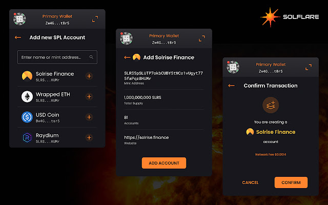 Solflare 是一个功能齐全的加密钱包,可在网络上使用,也可作为 Solana 和 SPL 代币的扩展程序使用。它允许您在 Solana 区块链上发送、接收和安全存储令牌,并允许访问 Solana 上的去中心化应用程序。