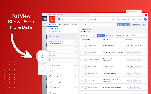 此销售潜在客户扩展程序可让您访问直接电话号码和电子邮件地址 - 无需离开您所在的选项卡。