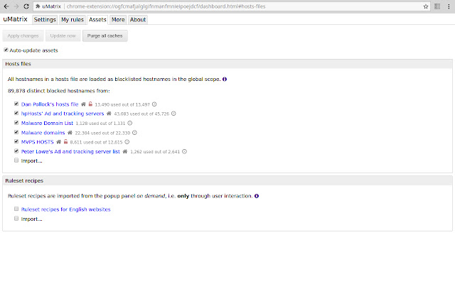 该扩展带有 3rd-party hosts 文件,总共超过 58,000 个不同的主机名(可以根据您的选择有选择地禁用/启用列表)。