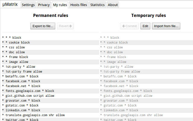 µMatrix:一种基于点击式矩阵的防火墙,具有许多隐私增强工具。对于高级用户。