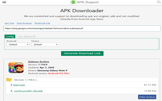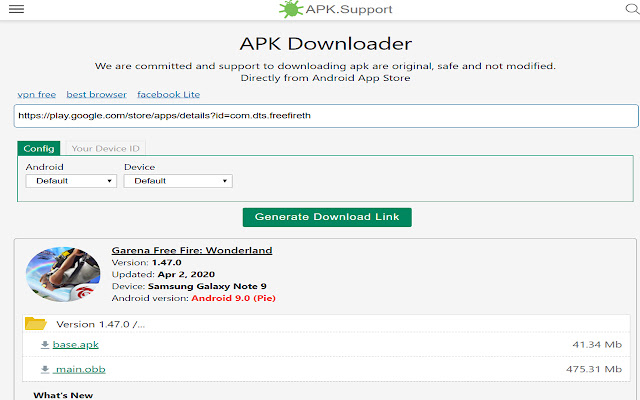 Google Play Store 应用程序使用称为 protobuf API(协议缓冲区)的协议工作,而免费在线 APK 下载器使用相同的 API。它生成直接下载链接并直接从 Google 服务器下载 APK 文件(Android App Bundle 或 APK & OBB 文件),无需 Google 帐户。