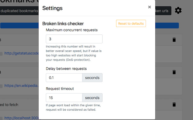 2. 阅读并更改您访问的网站上的所有数据(可选,在您使用 Broken URLs checker 之前不会询问)——检查书签页面是否加载并且不返回任何错误。