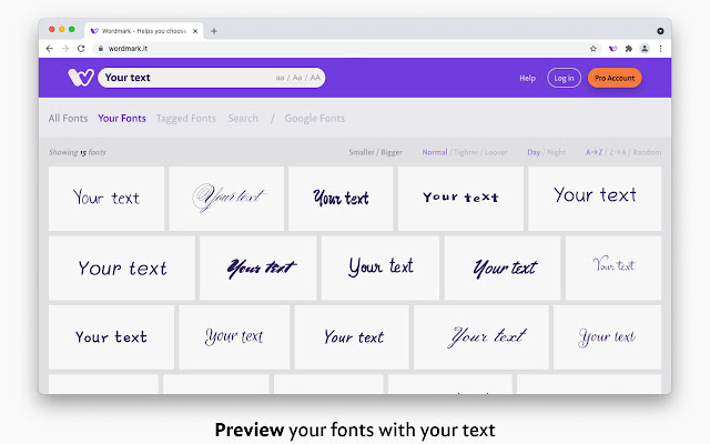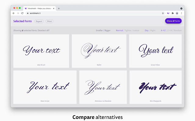 Wordmark.it 可以查看您计算机上已安装的默认系统字体。将此扩展程序添加到 Chrome 将使 Wordmark.it 也显示您在计算机上安装的字体。