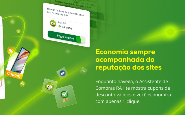 使用 Reclame AQUI 扩展程序,您可以在购买时查看商店的声誉,此外还可以获得巴西最大商店的折扣券和独家优惠。