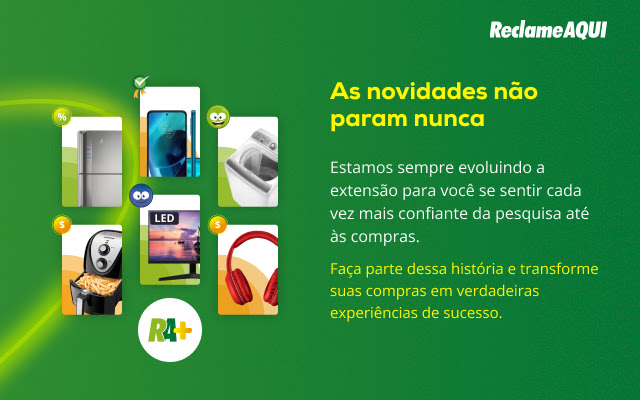 Reclame Aqui 现在具有 RA+,该扩展程序可帮助您以 Reclame Aqui 提供的更便宜和信心购买。