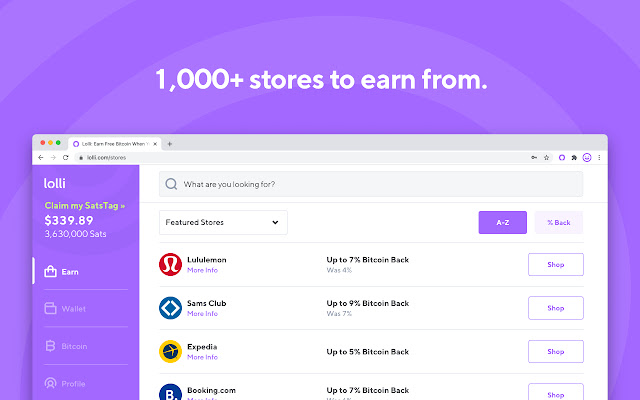 Lolli 是世界领先的奖励公司,当您在 1,000 多家商店购物时,它会为您提供免费的比特币!