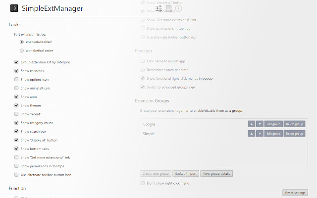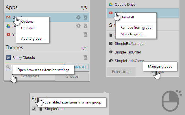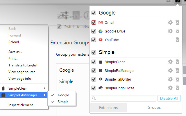 - 通过弹出菜单和右键菜单启用/禁用扩展群组
