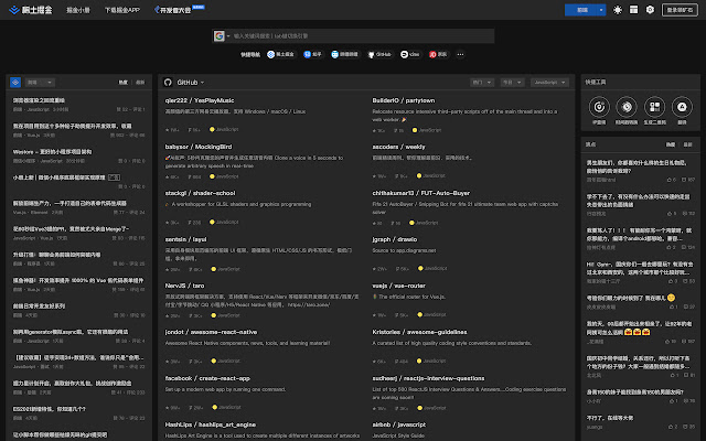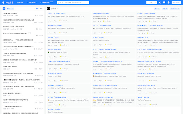 在新标签页展示聚合内容,包含前端、Android、iOS、后端、产品、设计六大频道,每个频道内都有一到多个内容源;