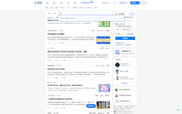 此外提供综合搜索及开发辅助小工具等能力为开发者的工作提效,浏览器激活状态下双击"j"键可快速唤起搜索框;