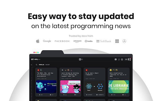 Daily.dev 是发展最快的在线社区,供开发人员随时了解最佳开发人员新闻。从 +400 个来源收集您喜爱的所有内容。