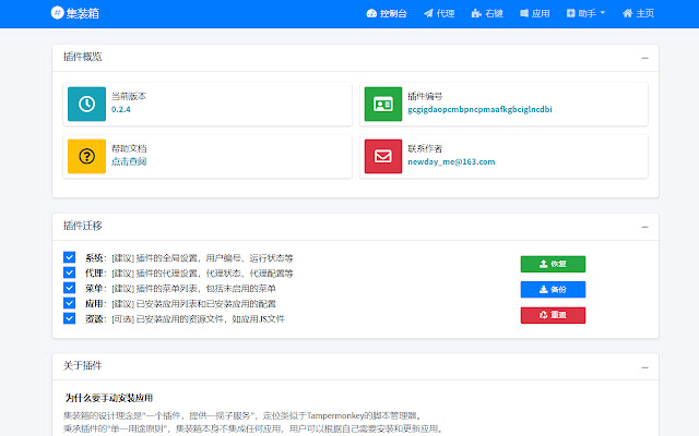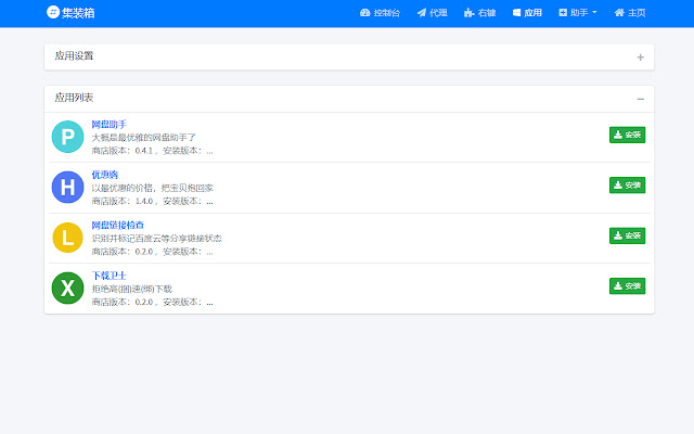 一个插件,提供一揽子服务。定位类似于Tampermonkey的脚本管理器,用户可以根据自己需要安装和更新应用。