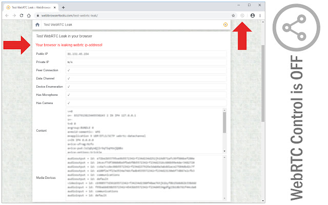 控制 WebRTC(禁用 | 启用)并保护您的 IP 地址。