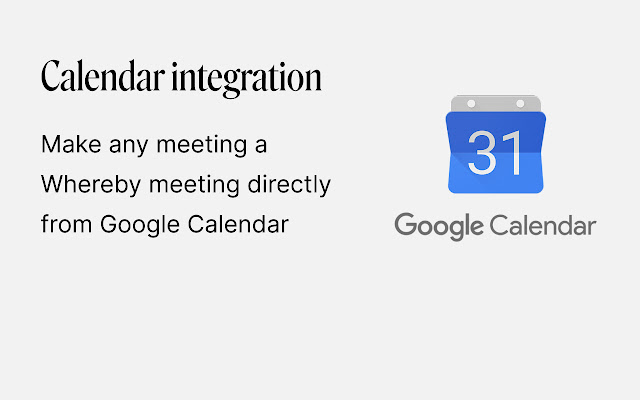 - 通过我们的 Google 日历集成使任何会议成为 Whereby 会议。