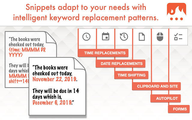 Text Blaze 不仅仅是快速的文本扩展,它还允许您使用替换模式对代码段进行编程。例如,通过在代码片段中包含一些简单的特殊字符来插入当前日期。您想为到期日设置 30 天的截止日期吗?添加文本扩展也很容易。