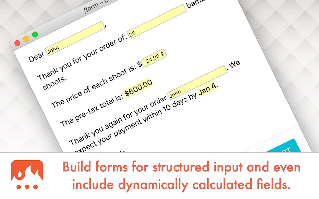 Text Blaze 还可以在您输入快捷方式时填写的代码段中包含字段。想要在您的电子邮件模板中包含客户的姓名?只需将其设为一个字段,它就会在整个电子邮件中按照您想要的方式重复出现。您甚至可以使用字段来触发动态计算。