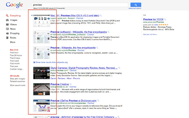 - 减少谷歌搜索结果中的左侧边距,为 pview 图像提供更多空间