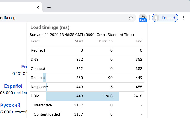 此扩展程序测量页面加载时间并将其显示在工具栏中。 Navigation Timing API 用于精确测量。