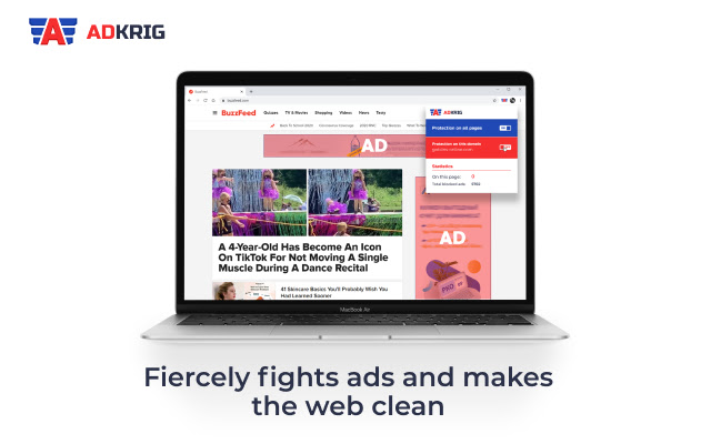 Adkrig is an adblocker. It pvents ads from showing on web pages.