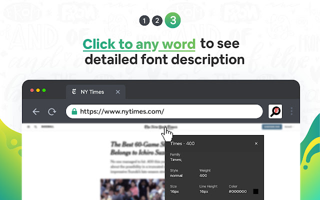 What Font 允许您知道字体名称、系列、颜色、样式、大小、位置。如此出色的工具可以快速创建设计好的网页。现在,您可以简单地识别喜欢的字体并根据您的需要选择完全相同的字体,而无需长时间搜索合适的字体。此扩展支持 Google API 作为字体查找器,因此您将获得所有流行的 Google 字体的信息。