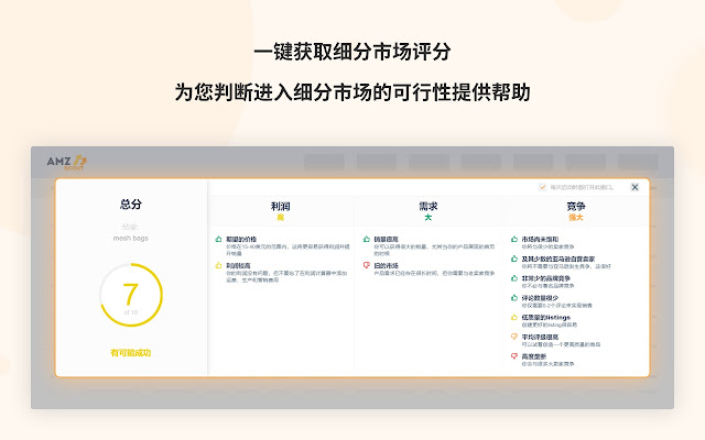 AMZScout Pro版插件节省您的时间和精力,让您快人一步找到热销商品的细分市场,快速开始销售盈利。