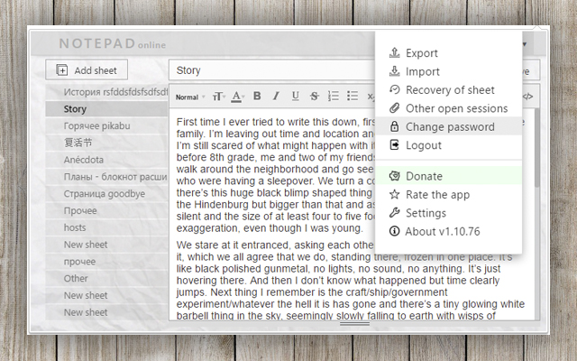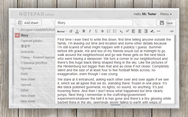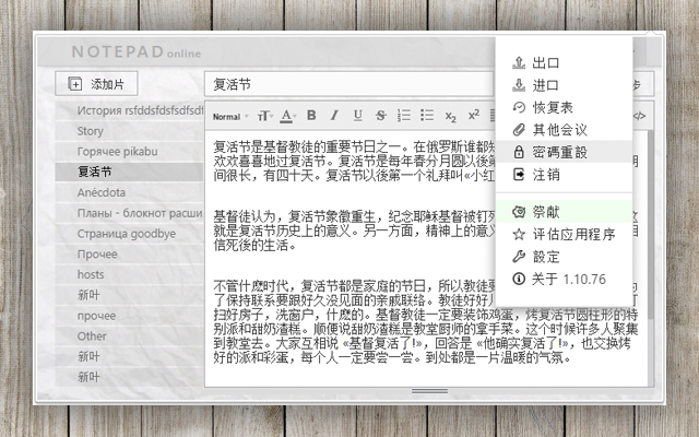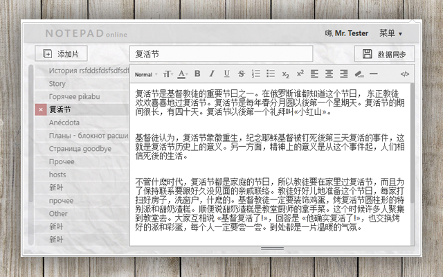 这是一个简单的记事本-在线上。 你可以保存任何文在线和访问的任何地方。 记事本用自动保存和同步。