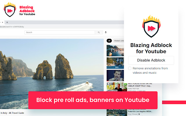 Blazing Adblock for Youtube blocks ads from Youtube. Block ads, banners, proll ads.