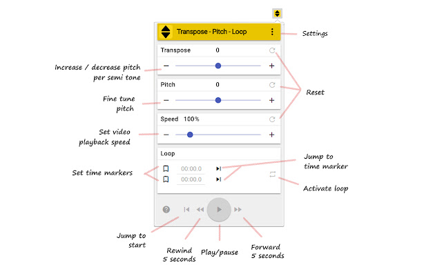Transpose ▲▼ pitch ▹ speed ▹ loop for videos