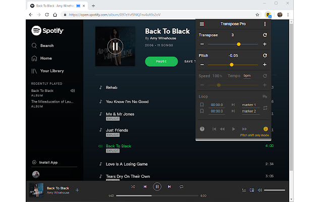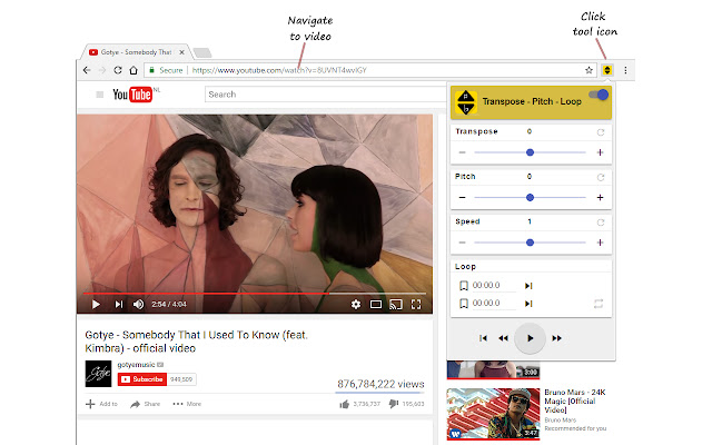 转至 Youtube 或 Vimeo 等视频网站,选择音乐视频,然后打开扩展程序即可开始使用。您想对 mp3 文件进行音高变换吗?这可能是一种更快的方法!