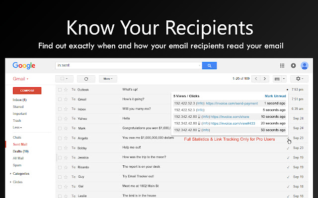 了解您的电子邮件是否被阅读。 Gmail、Outlook/Hotmail、Google Inbox、G Suite、Office 365 和 Yahoo Mail 的电子邮件跟踪。