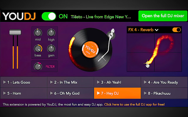 此扩展程序在任何网站(YouTube、Spotify ...)上都带来了 DJ 控件,这是必须的!由 YouDJ 的 DJ 软件专家设计。