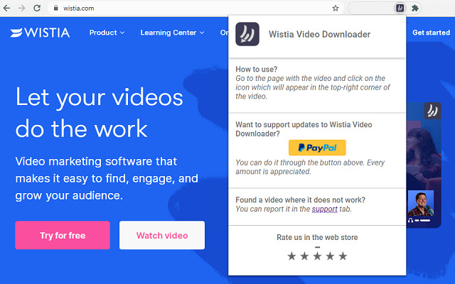 Wistia Video Downloader 是并将继续免费使用。然而,如果你想捐赠它是非常appciated。您可以通过 PayPal 完成:paypal.me/wistiavdownloader