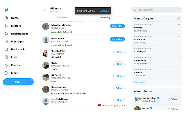 大量关注、大量取消关注、大量喜欢、大量不同、大量转发和大量取消转发在 Twitter 上具有强大的选项。