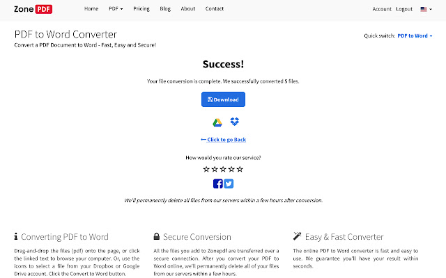 您的文件是完全安全的,因为它们是通过安全连接传输的。我们将在转换后的几个小时内从我们的服务器中永久删除所有文件。