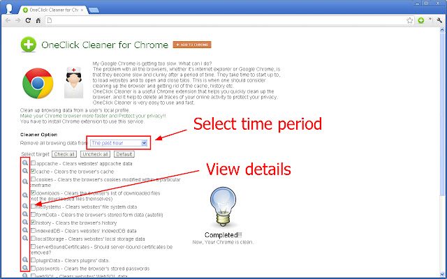 OneClick Cleaner 是一个有用的 Chrome 扩展程序,可帮助您快速清理浏览器。它有助于删除您在线活动的所有痕迹以保护您的隐私。