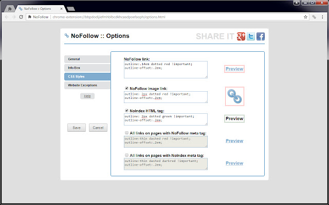 概述 nofollow 链接,检测网页上的 nofollow 和 noindex 元标记。具有网站过滤和自定义 CSS 大纲样式。