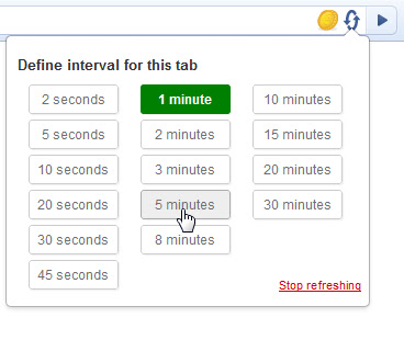 这个页面刷新扩展最好的一点是不需要设置——使用简单,安装它并让你的空闲页面自动重新加载。只需选择您想要的时间 Page-refresh 就会发挥它的魔力。