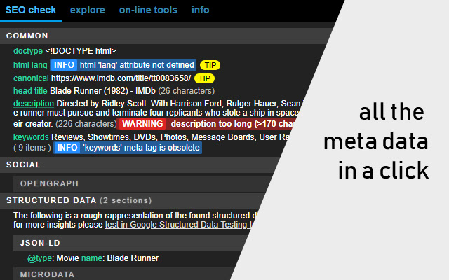轻松检查网页中的元数据,发现问题并获得修复建议。