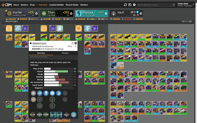 一个指向 DIM 网站的链接,它提供了一个强大的界面来管理 Destiny 中的项目。