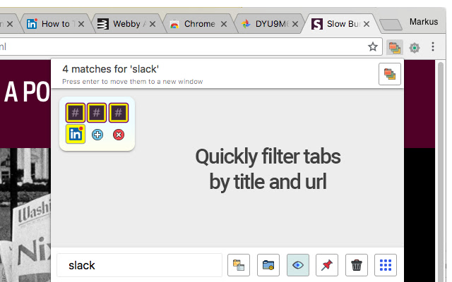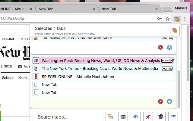 Tab Manager Plus 的主要目的是轻松找到“丢失”的标签。您可以使用键盘快捷键打开标签管理器 - Ctrl+M / Cmd+M 或单击图标 - 然后您可以立即输入!
