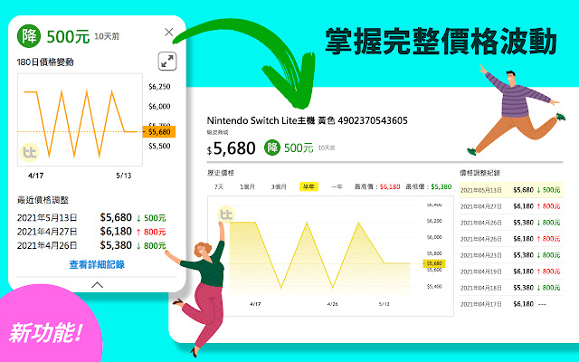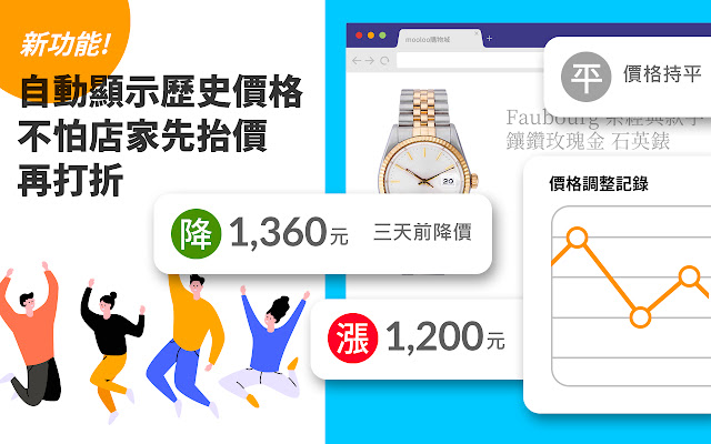 浏览商品时,自动显示商品历史价格,掌握价格变化,不怕商家先抬价再打折。