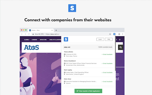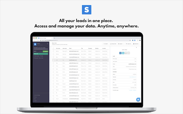 我们的网络应用程序可帮助您在列表中收集潜在客户的数据(姓名、电子邮件、职位、公司),并将其导出到您的 CRM、ESP、文件存储服务或 Excel 和 CSV 电子表格。
