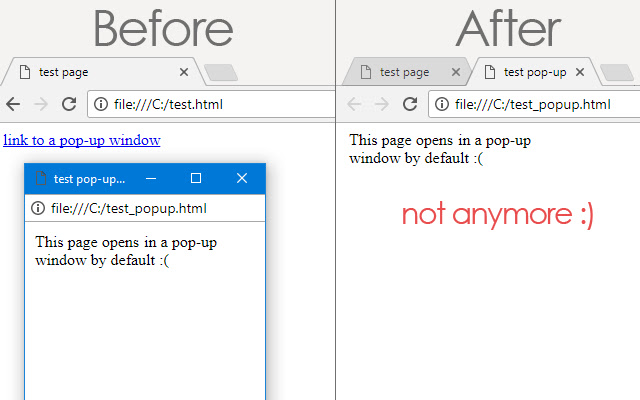 Open link in same tab, pop-up as tab [Free]