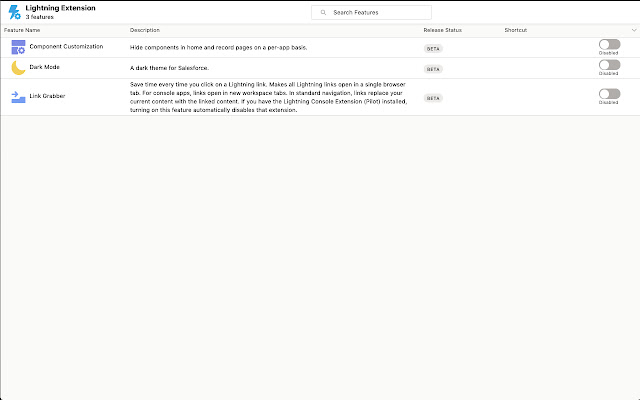 Lightning Extension 是由 Salesforce 的 Lightning 产品管理团队创建的功能库。此扩展旨在通过持续的生产力功能发布来补充用户体验。这些功能为最终用户提供了 Lightning 开箱即用无法提供的丰富增强功能,例如暗模式。