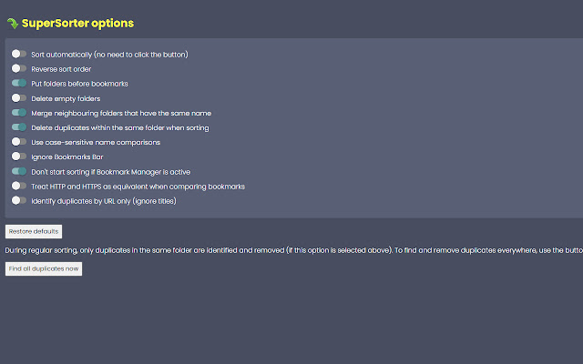 SuperSorter 还会删除空的书签文件夹,删除同一文件夹中的重复书签并合并具有相同名称的相邻文件夹。 SuperSorter 还可以每隔几分钟自动对书签进行排序,从而更轻松地保持一切整洁。