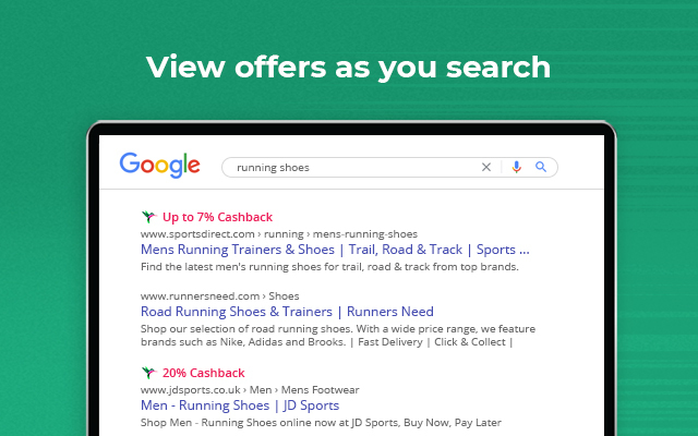 - 从扩展程序中搜索您最喜欢的零售商,并立即找出提供的返现率。